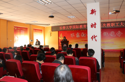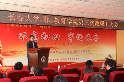2018年4月4日,国际教育学院教职工大会在学院五楼报告厅召开,校工会主席吕中华、学院领导班子成员以及全体教职工参加了会议。
