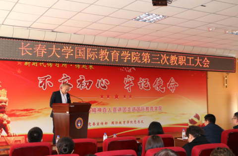 最后,学院党总支书记徐金堂从不忘初心、牢记使命、共同进步三个方面和大家进行了交流。不忘初心就是要各尽其责,发挥特长,扎实做好所承担的工作;牢记使命就是要围绕“特殊”二字做好文章;共同进步就是进一步加强班子和教职工队伍建设,努力优化育人环境。希望大家能有所启发,切实推动学院工作、激发学院活力,让自己变得越来越有价值,共同续写国际教育学院的辉煌!